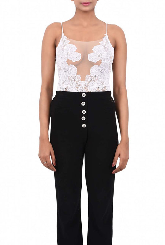 Women Premium Lingerie Lace and Mesh Bodysuit White