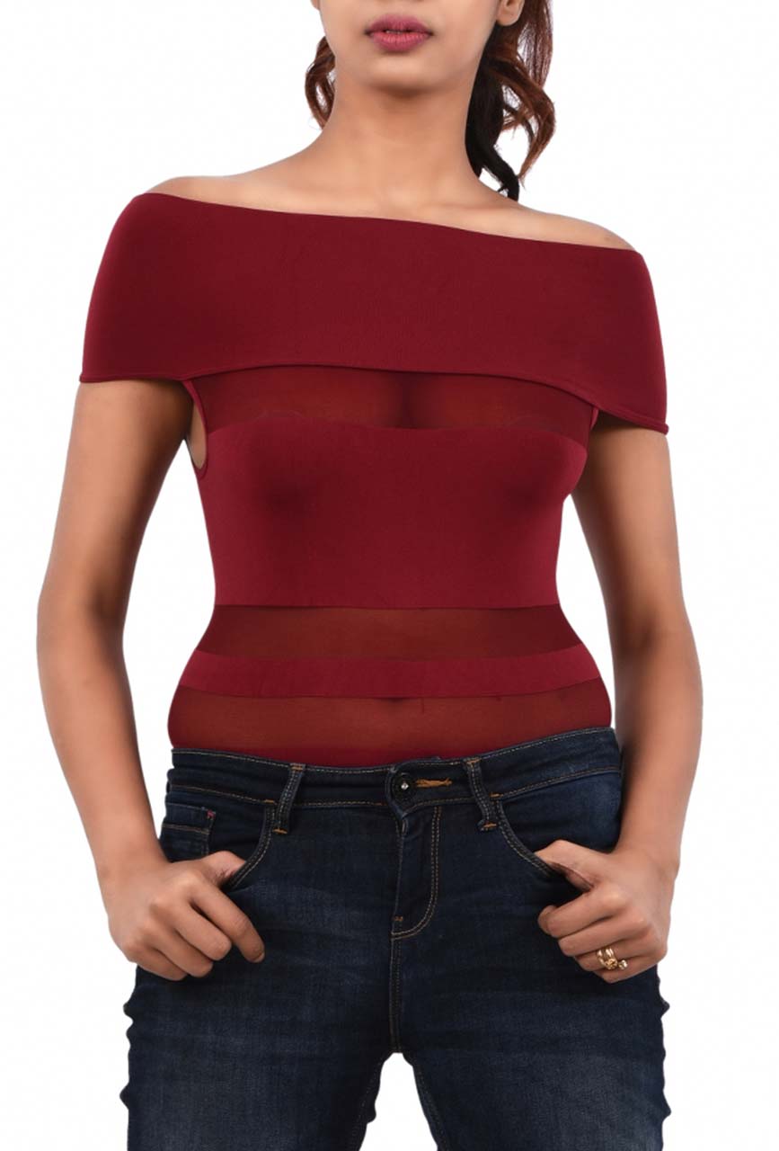 Let your body set the frenzy around you with this seductive bodysuit. A sexy choice to flaunt your cleavage, the bodysuit is made of breathable mesh that keeps you comfortable all day long. Bring out your bold beauty by pairing it with fitted trousers, a deep lip colour and hoop earrings.