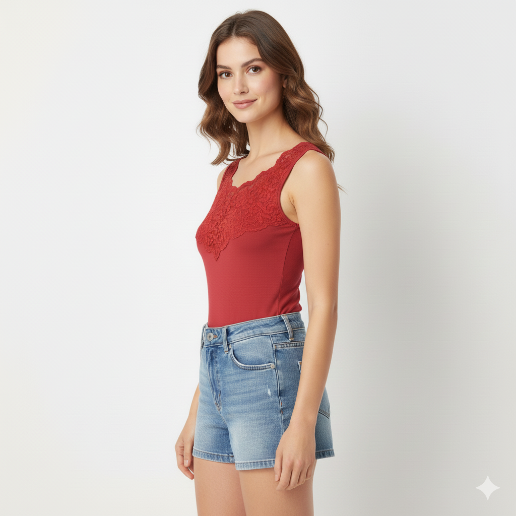 Women Broad Strap Slip With Front Lace By La Lingerie