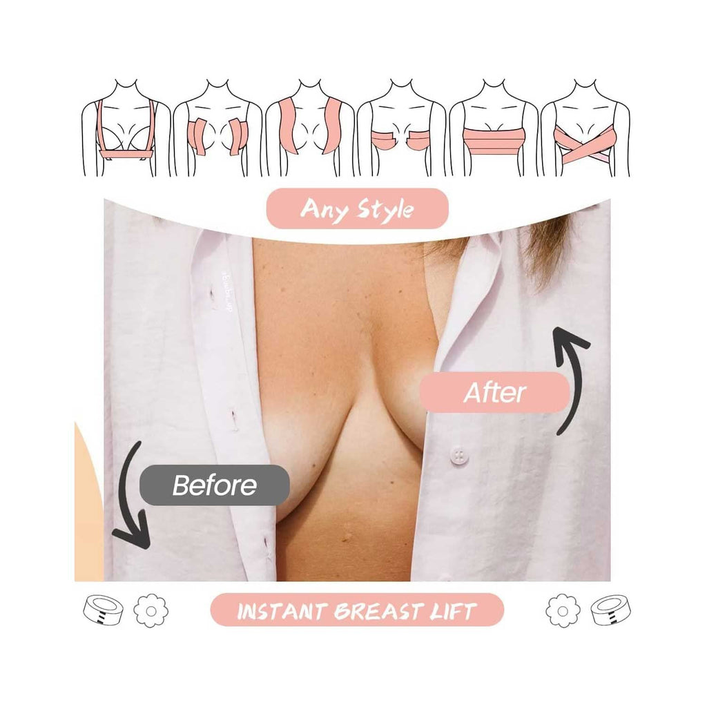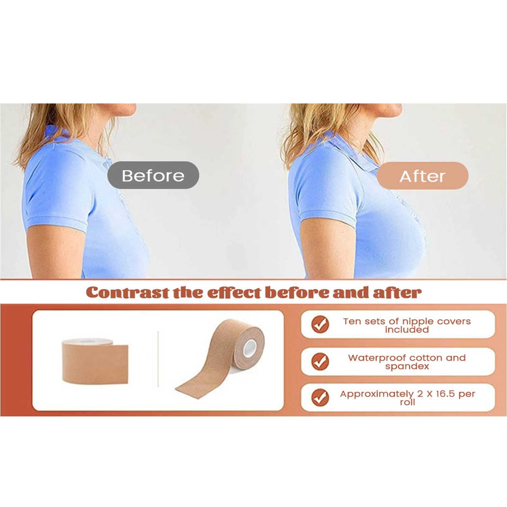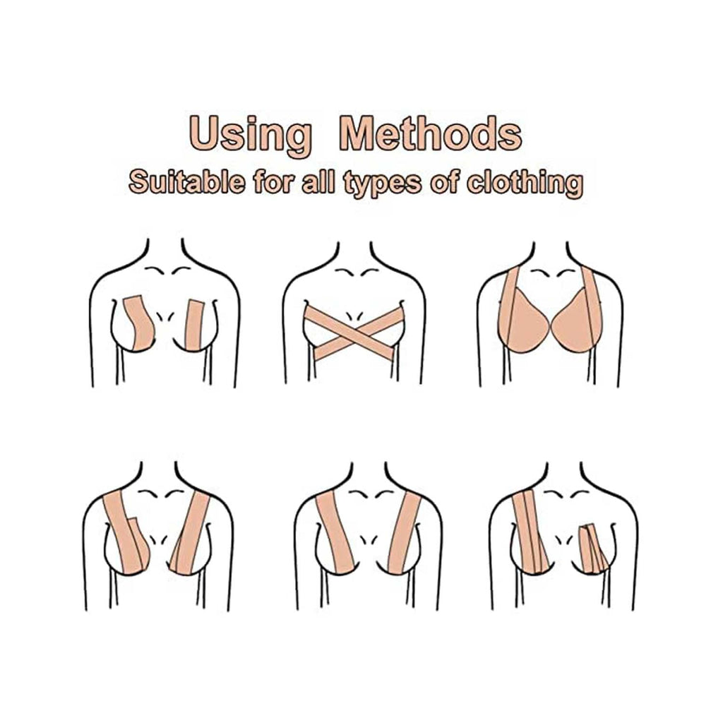 - No-more Bra Revelations: Our skin colored Chest Tape is a great solution for creating a perfect silhouette . Designed to fit perfectly, it enhances the appearance of your figure. No more uncomfortable bra and escape straps, your breasts will look natural , discreet support and coverage and fashionable.